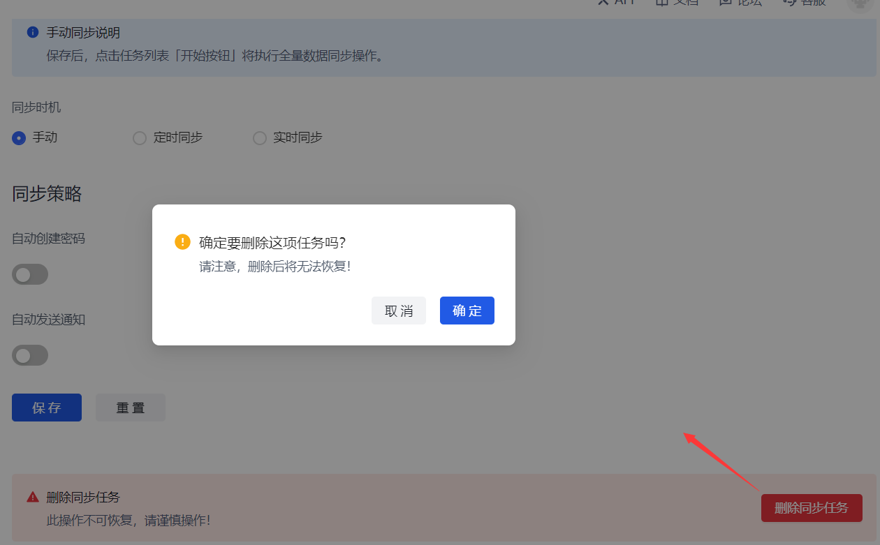 删除同步任务